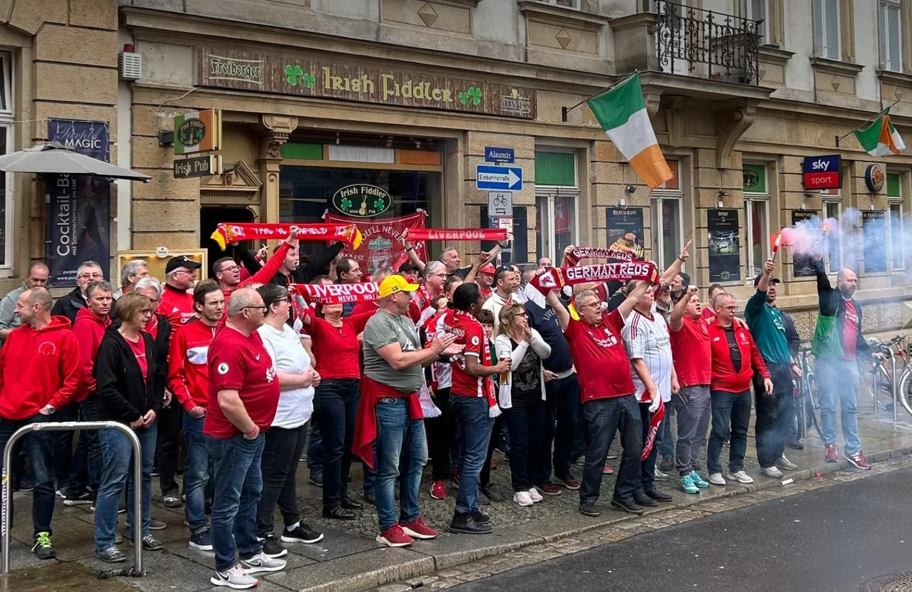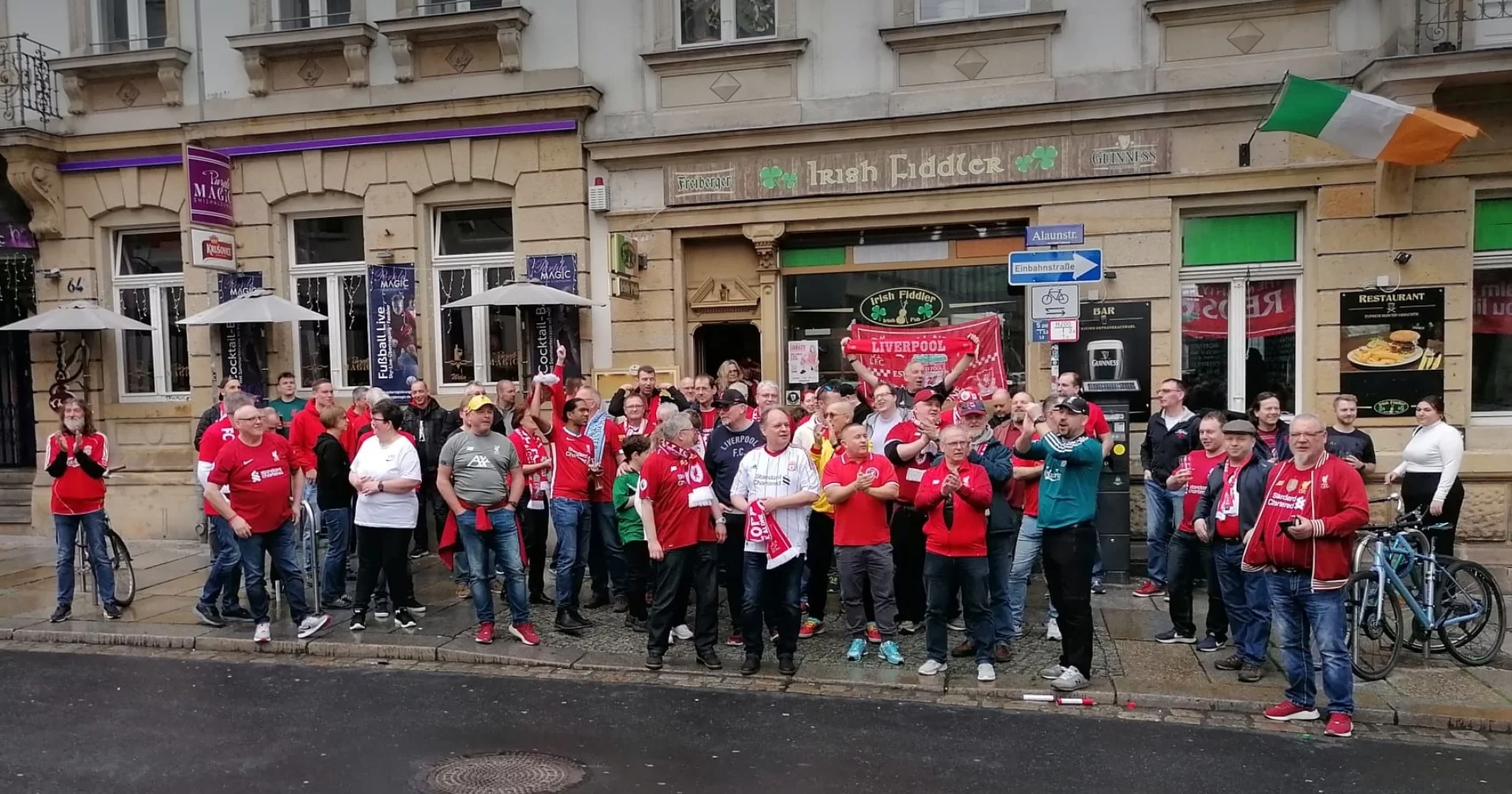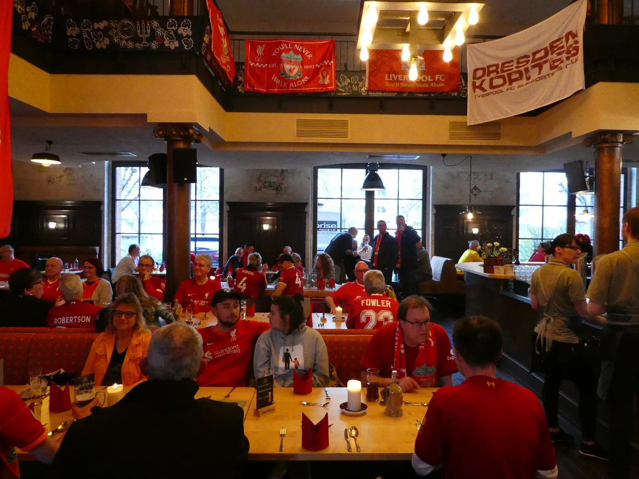 Der „Irish Fiddler“-Pub in Dresden Neustadt war sehr gut gefüllt, viele German Reds und deren Gäste fanden den Weg dorthin, um das Spiel gemeinsam mit den dortigen Stammgästen von den „Dresden Kopites“ in stimmungsvoller Atmosphäre anzuschauen. Beste Voraussetzungen also für einen tollen Fußballnachmittag.