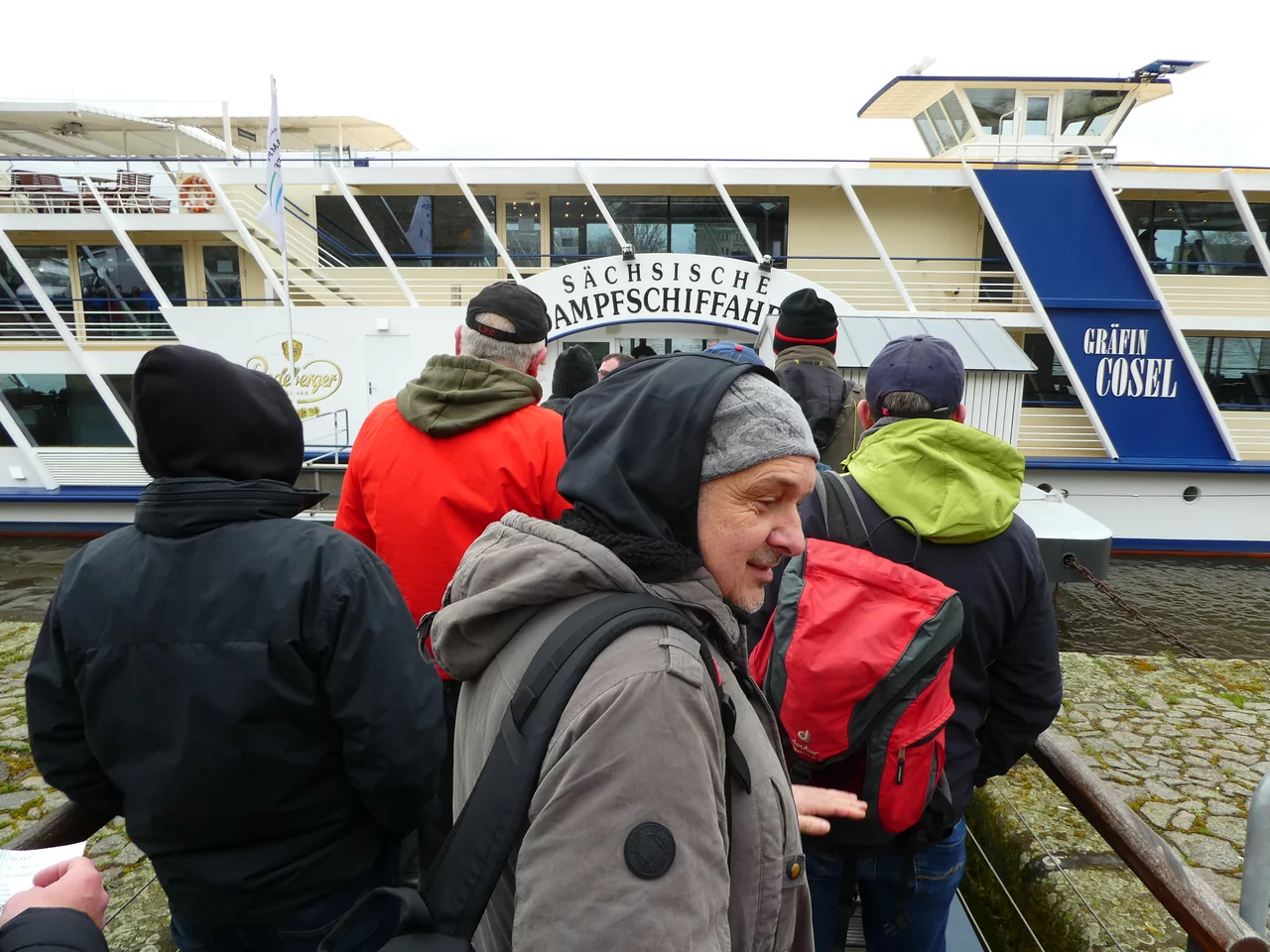 Am Sonntag stand dann noch eine Schifffahrt auf der Elbe mit oft schönem Blick auf Schlösser und Elb-Hänge auf dem Programm, konkret bis zum berühmten „Blauen Wunder“. Leider meinte es das Wetter dabei nicht eben gut mit uns, denn durchgehende Bewölkung, empfindliche Kühle und Wind luden nicht gerade auf das Sonnendeck unseres Schiffes ein. Dafür war es in den vollverglasten Passagierräumen umso gemütlicher.