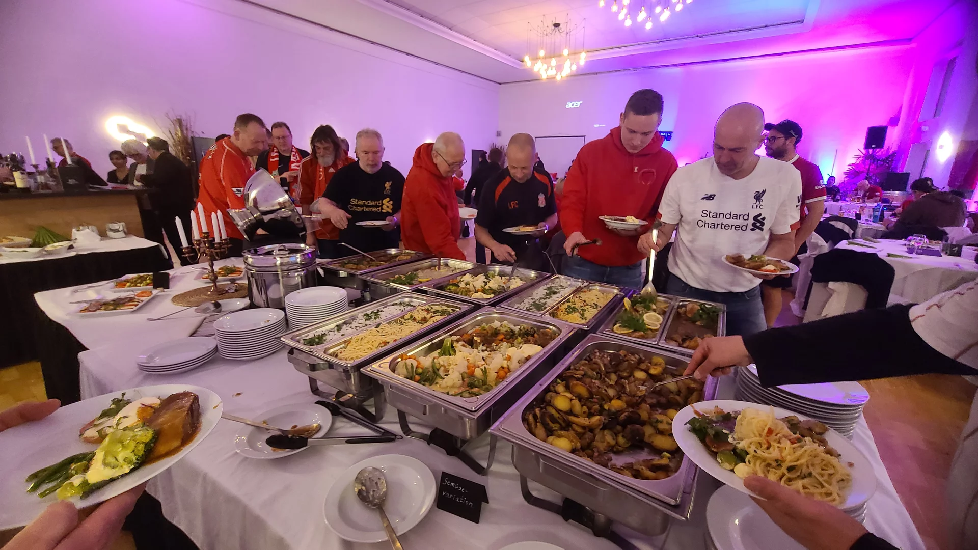 Nach all dem Offiziellen konnte nach einem Gruppenfoto (siehe Video-Link) endlich auch der Party-Teil starten, der mit dem Abendessen eröffnet wurde, das ausgesprochen gut schmeckte und rundum gut ankam.