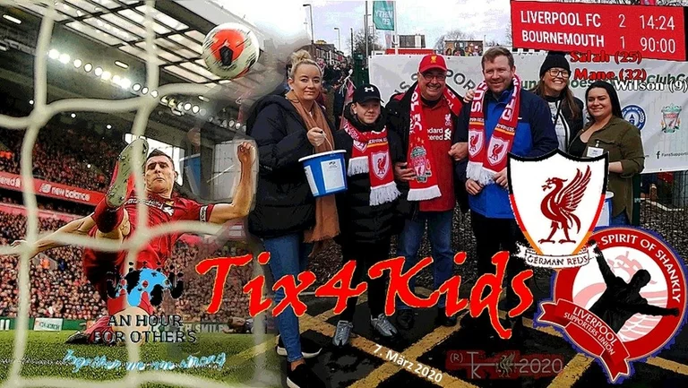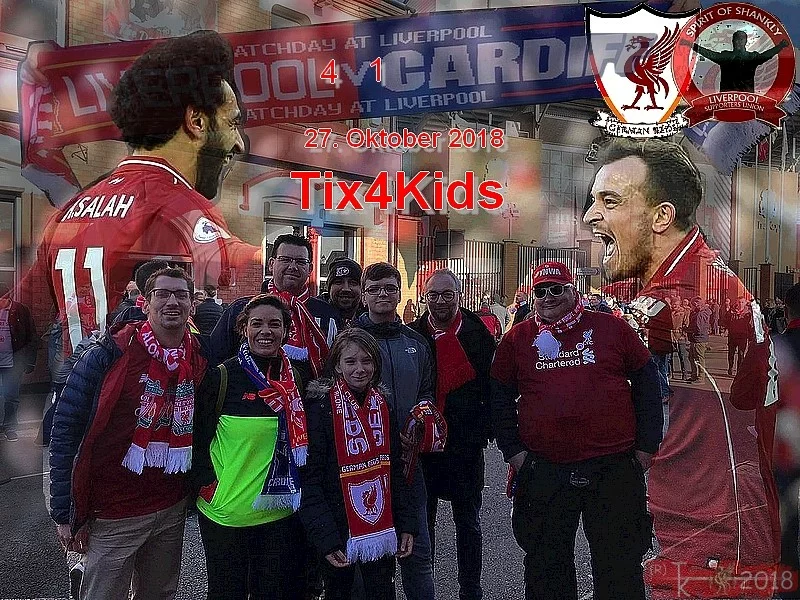Aus unserem anfänglichen Motto „German Reds-Tix for Liverpool-Kids“ wurde dabei schnell die gängigere Kurzform „Tix4Kids”.